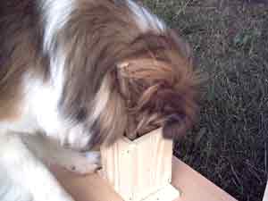 also zieht sie an dem Stöckchen und holt sich so das Lerckerli raus.  |